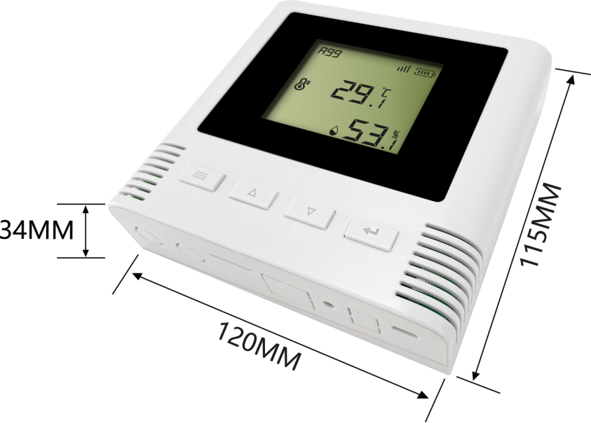 1. 主顯示界面為:溫度及濕度當前值、SIM信號強度、電池電量信息。